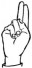 На ћирилици написано РУМЕНА ИРИЧАНИН састоји се из 14 слова [?]. Исписано ћириличном једноручном азбуком за глувонеме: